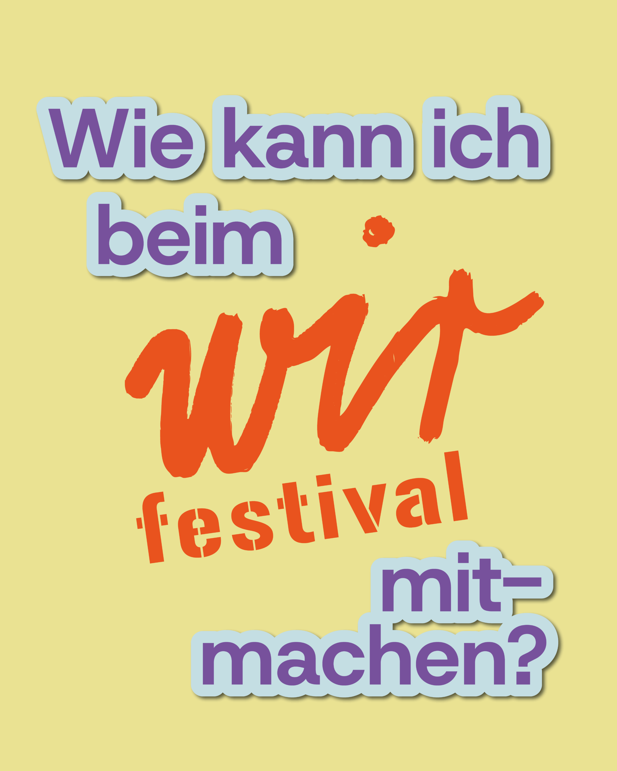Zusätzlich zum festen „wir festival-Logo“ ist eine Kombination aus wir-Logo und einem passenden kurzen Verb (max. 8 Buchstaben als variierende Unterzeile möglich.